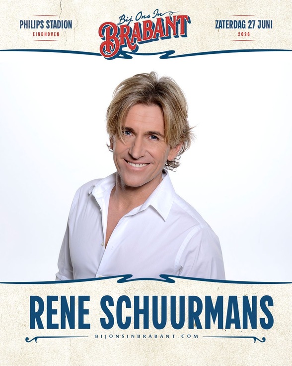 Een nieuwe reeks concerten moet het Philips Stadion volgend jaar juni weer in vuur en vlam zetten. Op 27 juni 2026 is dat "Bij ons in Brabant" met artiesten van eigen bodem, een idee van de Eindhovense zanger en entertainer Joël Borelli. Uiteraard mag Rene Schuurmans niet ontbreken tijdens dit feestje. Zeker niet als het Evenement de naam draagt van zijn hit en Brabantse Volkslied "Bij Ons in Brabant".